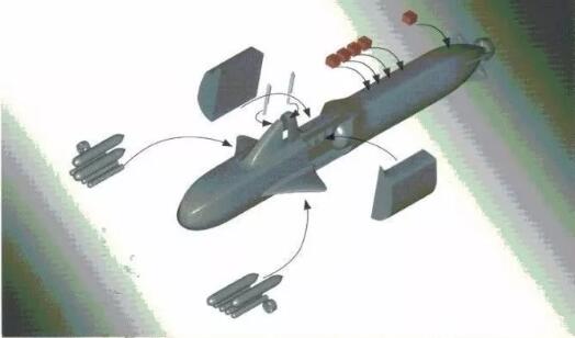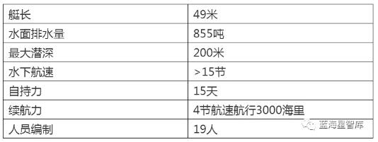 图 9 SMX-31潜艇概念图 法国舰艇装备集团新推出的SMX-31型设计排水量为3000吨,艇长为70米,宽13米,高9.7米,最大潜深超过250米,最大航速20节,续航力30-45天,可搭载鱼雷、导弹等武器16-46枚。