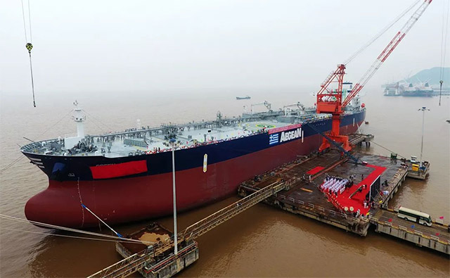 1月3日,舟山中远海运重工为希腊Aegean Shipping公司建造的第二艘11.3万载重吨原油轮“GREEN AURA”在舟山中远海运重工顺利命名交付。