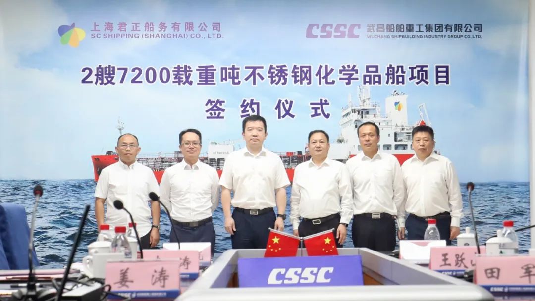 武船“云签约”2艘7200载重吨不锈钢化... 2022/06/02 01:31:31 近日,中国船舶集团旗下中国重工子公司武船集团与上海君正船务有限公司通过“云签约”形式签订2艘7200载重吨不锈钢化学品船项目建造合同。