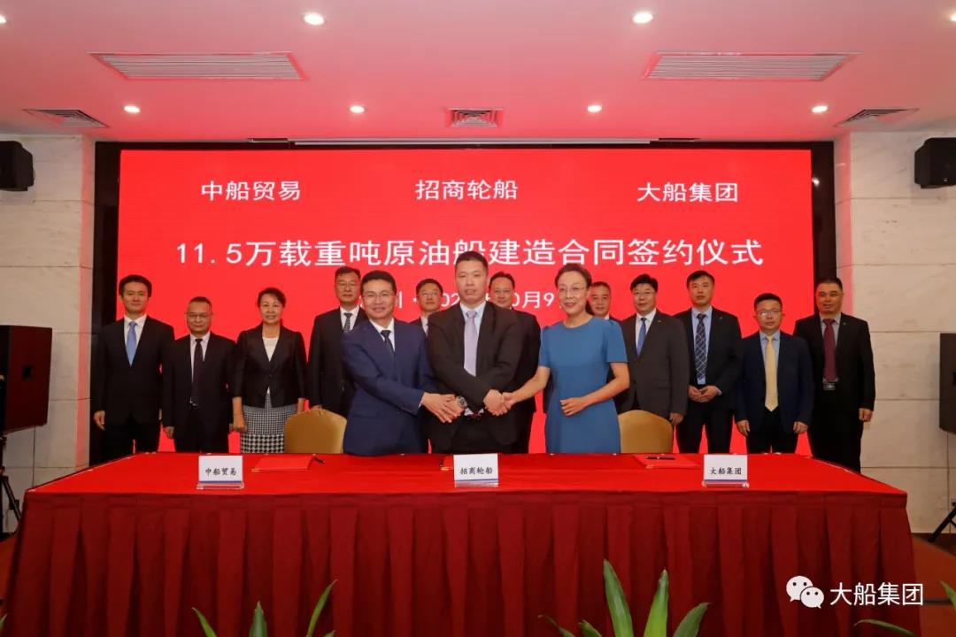 大船又签新单 2021/10/11 08:10:25 10月9日,中国船舶集团旗下中国重工子公司大船集团、中船贸易与招商局集团旗下招商轮船在深圳明华会议中心签署了1艘11.5万吨原油船建造合同