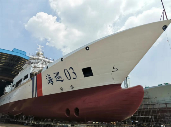 海南自贸港最大吨位海事巡航救助船下水命名... 2021/09/16 10:27:11 中国船舶集团旗下黄埔文冲建造的海南海事局大型巡航救助船“海巡03”号在广州正式下水命名