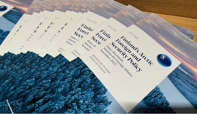 芬兰发布《北极安全战略》 2025/12/01 02:41:16 11月25日,芬兰发布《北极安全战略》,旨在增强在北极地区的影响力。该战略称美国将北极作为其大国竞争的重要舞台,更多受“美国优先”政策影响,优先考虑国家安全、经济利益等因素,缺少对气候变化和可持续发展的关注